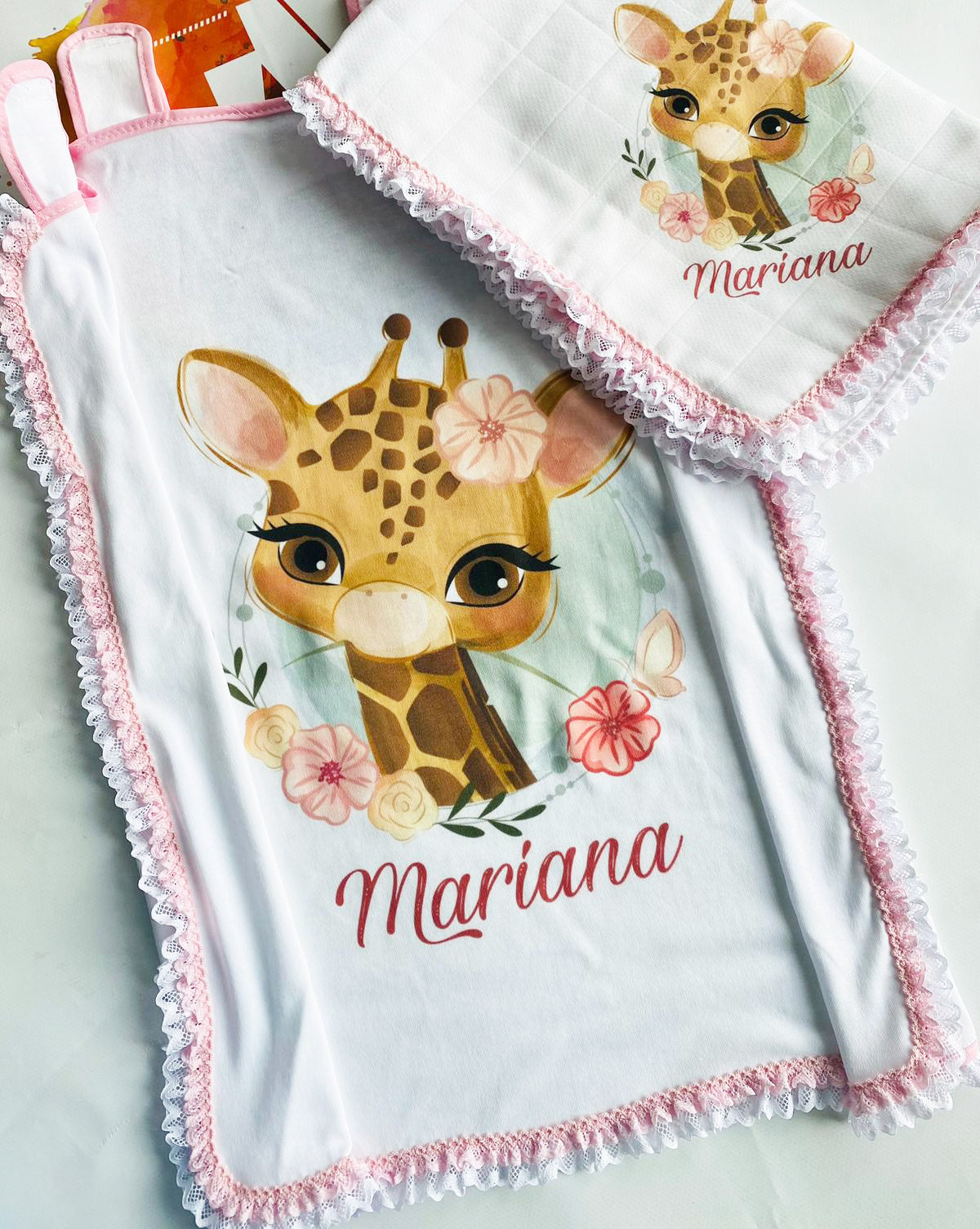 - Fralda de algodão duplo com renda e personalização