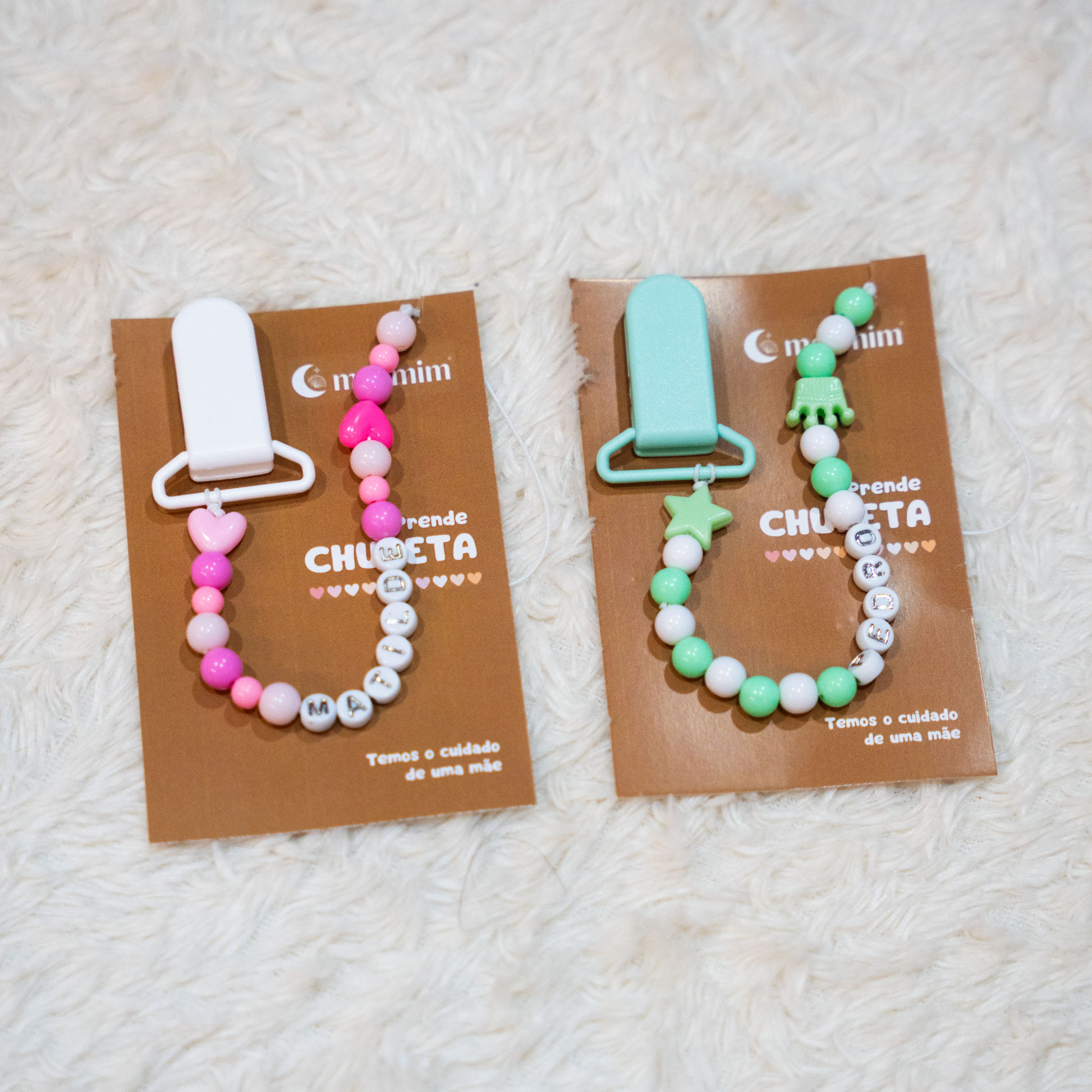 Feito com materiais de alta qualidade, este prende-chupeta é personalizado com o nome do bebê em acrílico, trazendo um toque único e delicado. Ideal para evitar que a chupeta caia no chão ou se perca, mantendo-a sempre ao alcance do pequeno.