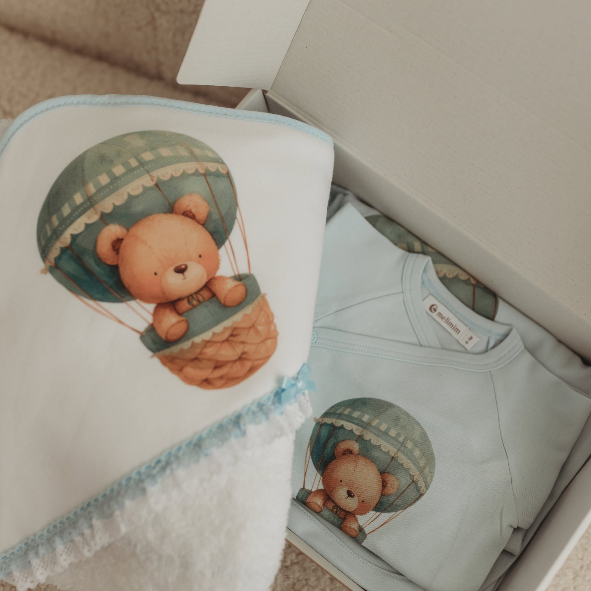 Uma seleção cuidada de peças essenciais para os primeiros momentos do bebé. Esta box é perfeita para oferecer como presente de nascimento ou para completar o enxoval, combinando suavidade, qualidade e um toque de ternura.