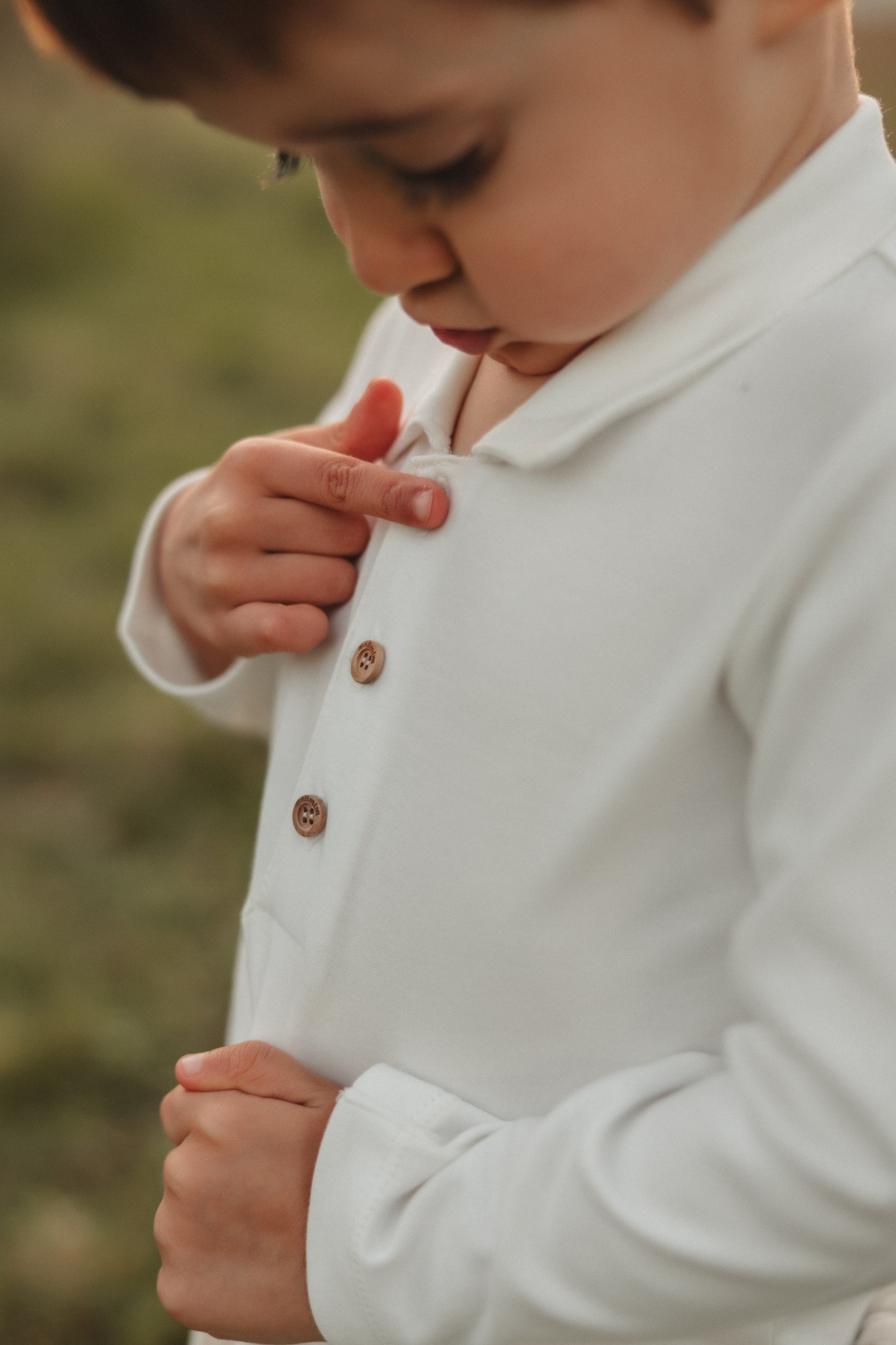 Camisola ou Body em algodão PIMA, com gola e botões em Madeira.