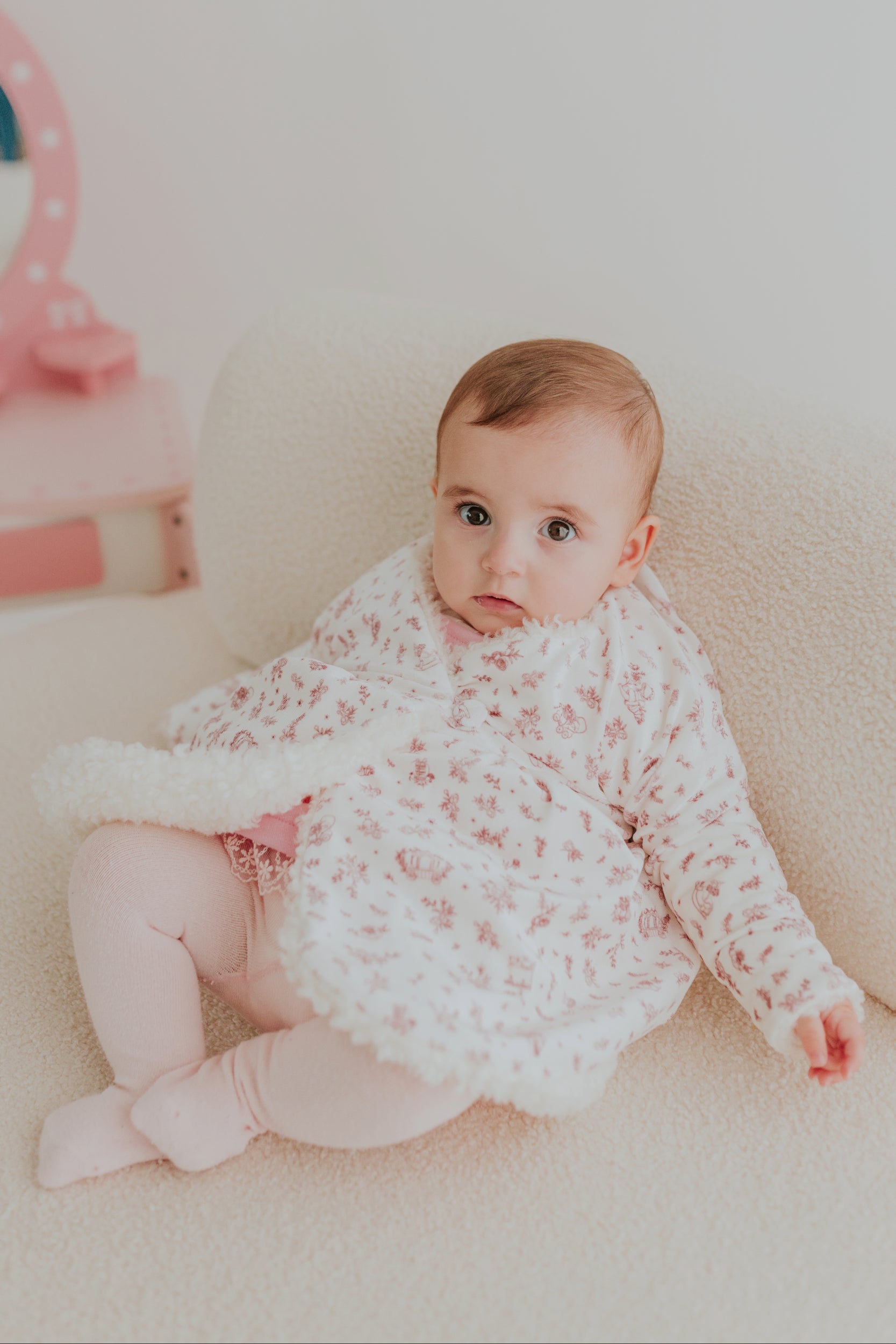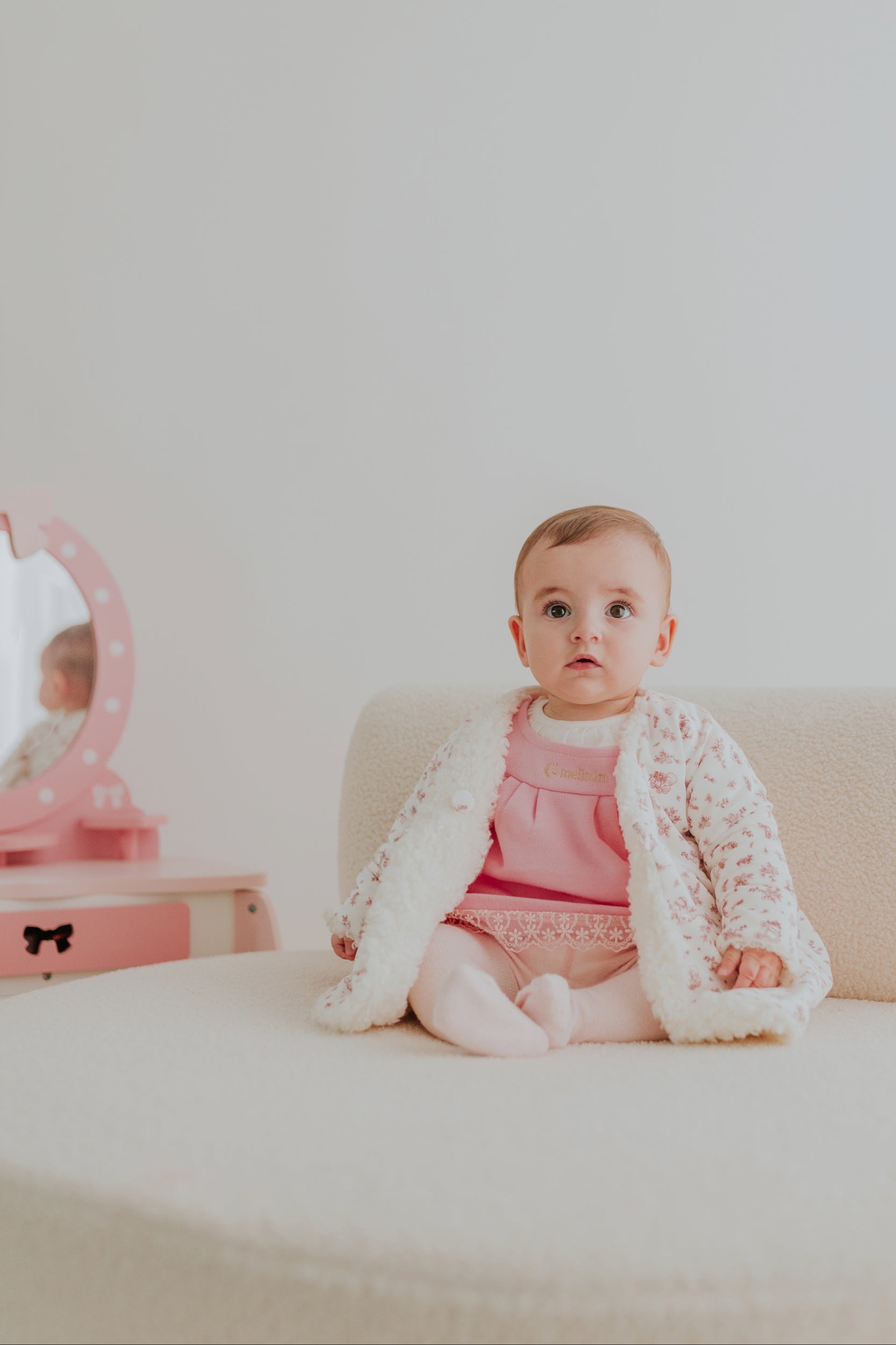 Versátil e cheio de charme, este casaco reversível permite que pequenas sonhadoras escolham como querem viver a magia — entre abraços de ternura ou passeios por florestas imaginárias, estrelas e criaturas fantásticas sempre por perto.