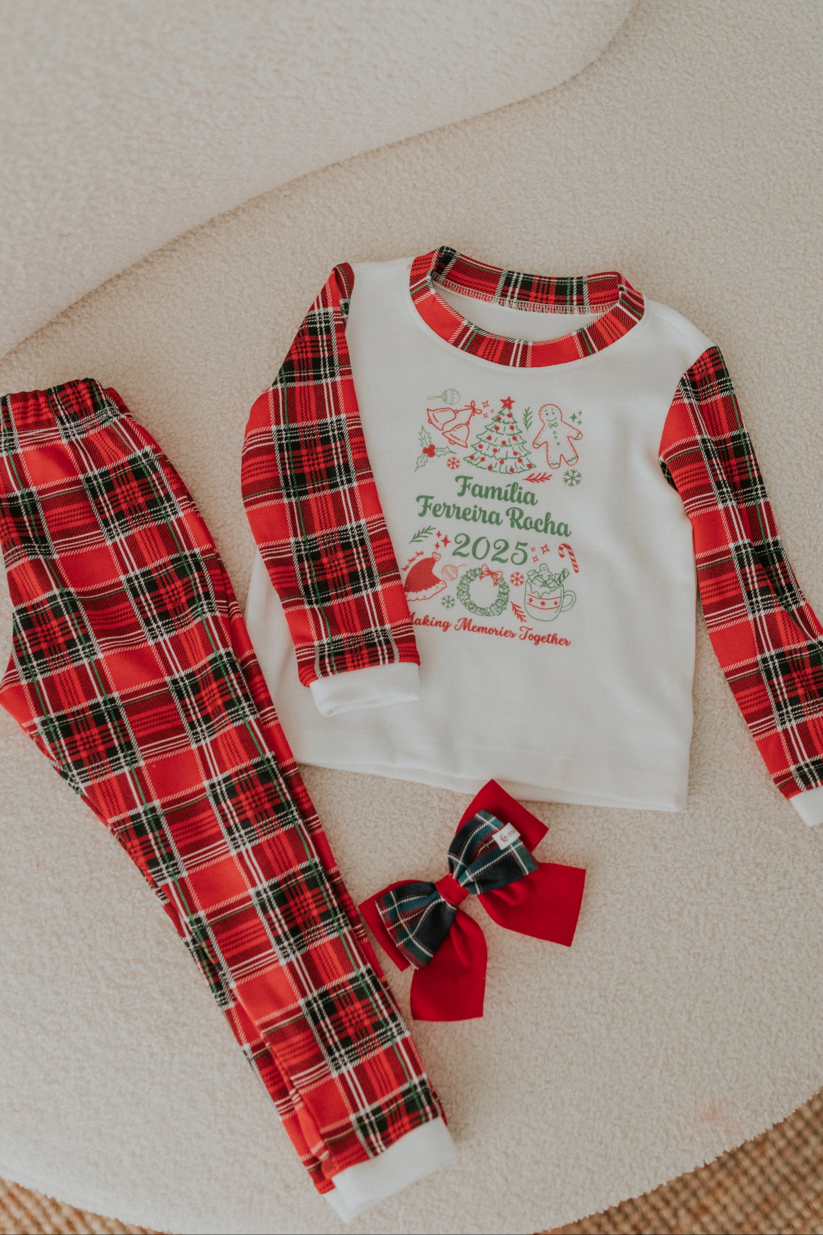 Entre no espírito natalício com este adorável conjunto de pijamas combinados para toda a família! Com um padrão clássico de xadrez vermelho e detalhes festivos, este pijama é perfeito para fotos de Natal, manhãs junto à árvore e noites cheias de risadas e histórias.