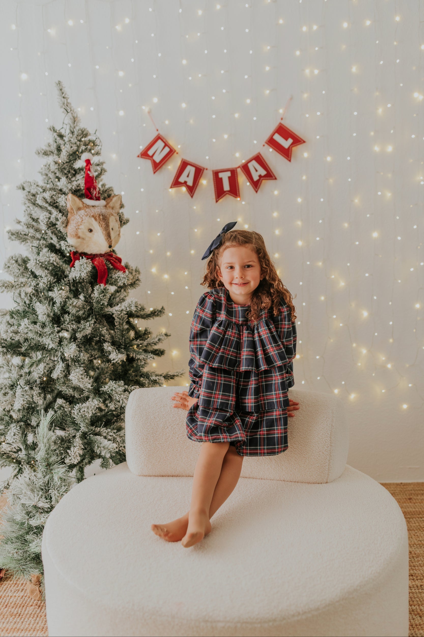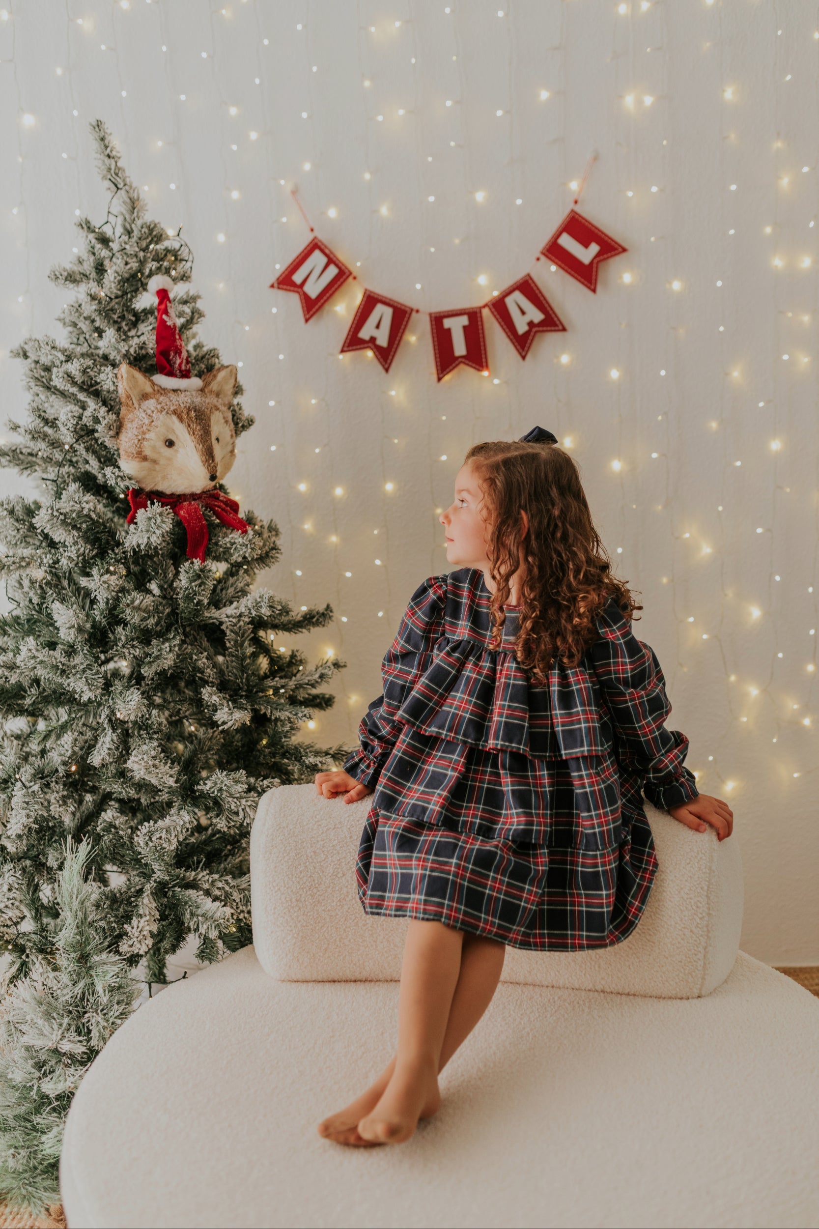 Com o charme intemporal do xadrez e a leveza delicada dos folhos, este vestido transforma cada movimento num verdadeiro rodopio de magia. Feito em tecido macio e confortável, combina estilo clássico com a doçura da infância, perfeito para momentos especiais ou brincadeiras cheias de imaginação.